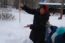 Большое место на прогулке отводится наблюдению за всем, что окружает малыша. Например, наблюдаем за снегом: рассматриваем снег и размышляем: «Почему снег белый?», «Почему он скрипит?», «Как изменяется цвет снега в разное время суток и при разном освещении?». А еще проводим эксперименты: измеряем глубину сугробов в разных местах участка, проверяем, когда снег тает, когда вода застывает и другое. Суембика Набиулловна с детьми провели разные эксперименты....