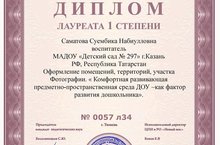 Поздравляем нашего воспитателя Саматову Суембику Набиулловну, получившую диплом лауреата 1 степени во Всероссийском дистанционном конкурсе учебно-образовательных материалов "Образование-2017".