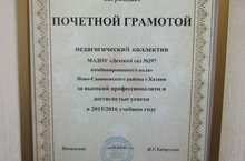 Педагогический коллектив нашего детского сада был награжден Почетной грамотой Управления образования ИКМО г.Казани за высокий профессионализм и достигнутые успехи в 2015-2016 учебном году.