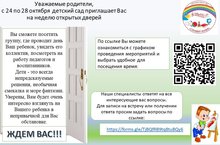 Уважаемые родители, мы Вас ждем с 24 по 28 октября на Неделю открытых дверей.