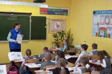 Сегодня в начальной школе прошла лекция с инспектором ГИБДД о правилах поведения на дороге. Инспектор напомнил детям как правильно переходить дорогу, для чего нужны светоотражающие знаки и как правильно использовать детское автокресло.