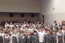 Выпускник школы№113 Шириков Александр вместе с учащимися 1 класса и классным руководителем Галеевой Д.Х..