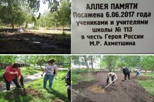 В рамках проекта «России славные сыны» на территории Муниципального бюджетного общеобразовательного учреждения «Средняя общеобразовательная татарско – русская школа №113 с углубленным изучением отдельных предметов им. Героя России М.Р. Ахметшина» силами учителей, родителей и учащихся заложена Аллея памяти в честь Героя России М.Р. Ахметшина.
