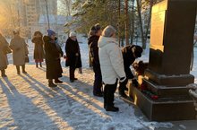 минутой молчания и возложили цветы у памятника М.Р. Ахметшину.