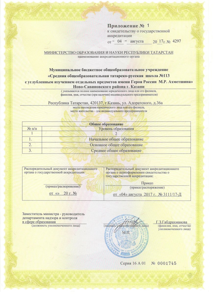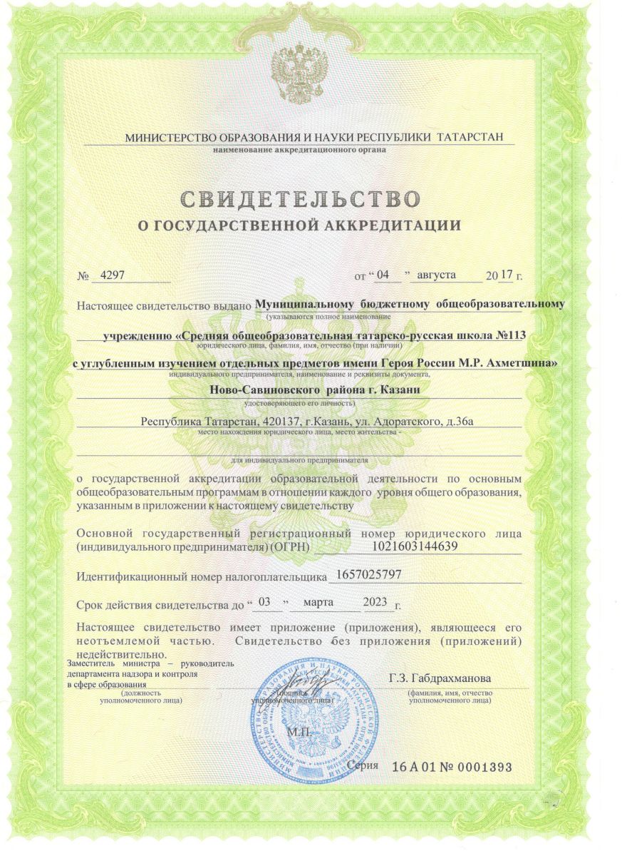 Муниципальное бюджетное общеобразовательное учреждение «Средняя общеобразовательная татарско – русская школа №113 с углубленным изучением отдельных предметов имени Героя России М.Р. Ахметшина» Ново-Савиновского района г. Казани