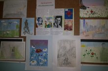 В школе на 1 этаже и в библиотеке открыта выставка творческих работ учащихся, посвященная 110-летию со дня рождения татарского поэта-героя М. Джалиля
