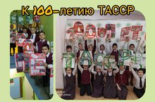 В рамках проведения мероприятий, посвященных 100-летию со дня образования ТАССР, в нашей школе были проведены классные часы “100 лет ТАССР” и проектные работы на тему «Татарстан- наш общий дом» . В ходе этой работы была показана презентация об истории становления Республики. Обучающимся продемонстрированы исторические факты образования татарской народности, знаменитые люди Республики, народные промыслы, национальные костюмы и татарские национальные праздники.