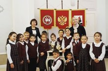 Учащиеся 1 "В" и 5 "Б" класса вместе с классным руководителем посетили с экскурсией Центр семьи Казани. В увлекательной форме о Дворце бракосочетаний рассказала Главный специалист Гузель Мухутдинова. Совместно с учащимися она провела показательную церемонию брака, где в роли жениха и невесты были сами малыши - первоклашки.
