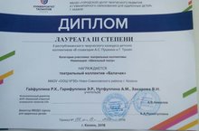 Наша подготовительная к школе группа приняла участие в III Республиканском творческом конкурсе детских коллективов "В созвездии А. С. Пушкина и Г. Тукая". В номинации "Школьный театр" наш театральный коллектив "Балачак" получил Диплом лауреата III степени.
