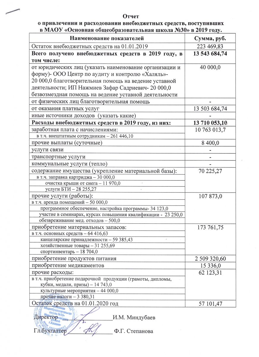 Отчет о привлечении и расходовании внебюджетных средств за 2019 год