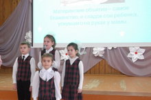 Ученики 1Б класса выступили на празднике для мам.Они спели песенку для любимых мамочек и рассказали стихи.