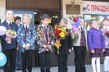 Ученики 1-х классов на торжественной линейке читают стихи! Они очень волнуются. Для них это ответственное задание.