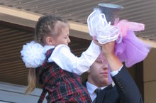 Ученице 1А класса посчастливилось дать первый звонок на торжественной линейке.