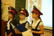 Агитбригада учеников 5 б класса выступили перед первоклашками с правилами дорожного движения. Рассказали историю знаков движения. Провели игру в командах.
