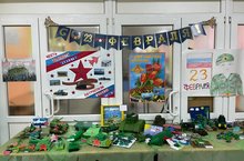 Перед вами творения учащихся начальной школы(настоящий военный парад!), стенгазеты и результаты исследований, интервью учащихся среднего звена. Мира и здоровья, нашим защитникам Отечества. -
