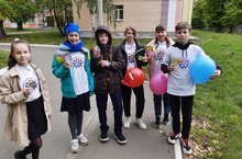 Объединение "Актив", участники проекта SMS-дети, принятия участие в акции "Поделись улыбкой". Ребята делились своим позитивом через смайлики с прохожими и клеили позитивные объявления.