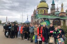 Дошли до Печищ, оттуда до Верхнего Услона, устали. Переход оказался в 10 км. Пообедали, пошли до Верхнеуслонского мухтасибата, потом до Парка Победы, оттуда до Вечного огня (только он почему то не горел ), а там до парома через Волгу. Доплыли до Храма Всех религий, экскурсия местами до мурашек, всем советуем. Оттуда на 45 автобусе до школы.