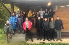 День 1: Мы встретились у школы, проверили снаряжение, распределили продукты и отправились на поиски приключений. Погода была прекрасная, осеннее солнышко ☀️ пригревало, на 22 автобусе бы добрались до Горьковского шоссе, оттуда на 104 до Залесного, дальше на перекладных до Набережных Моркваш. Проезжая через Волгу, понимаешь какая огромная эта река! ???? Пройдя 3 км мы добрались до нашего домика у леса. Разобрали вещи, отдохнули, потом ребята разделились на три группы: одни пошли разведывать дорогу по лесу, по которой должны были идти на следующий день; вторые до магазина за продуктами первой необходимости; третьи остались готовить обед.