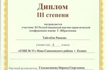 Поздравляем с 3 местом Тайгибова Рамазана (науч.рук. Гильмизянова М.Г.) на республиканской научно-практической конференции имени Г. Ибрагимова