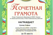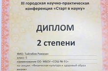 Поздравляем Анисимову Марию, ученицу 4 класса (науч.рук. Евсикова С.М.) и Тайгибова Рамазана, ученика 5 класса (науч.рук. Гильмизянова М.Г.) с отличными результатами на городской научно-практической конференции "Старт в науку".