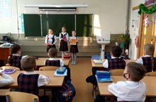 Учащиеся 6а класса выступили перед учениками 2 а класса по теме: " День Конституции РФ".