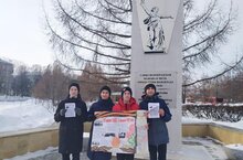 Ученики 7А вместе с учителем истории Лукояновым К.В. провели просветительскую акцию у мемориала «Город-герой Волгоград». Ребята раздавали листовки-памятки, беседовали с прохожими о событиях тех лет, возлагали цветы.