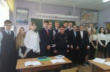В рамках месячника безопасности классный час посетил сотрудник ДПС с темой беседы: «Безопасность на дороге»