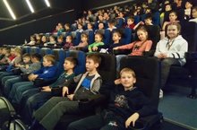 Ученики 2а,3а,4а,б на просмотре мультфильма "Королевский корги"