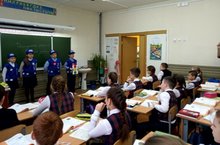 Перед учениками 4 Б класса выступили юные инспектора движения 5А и повторили ПДД