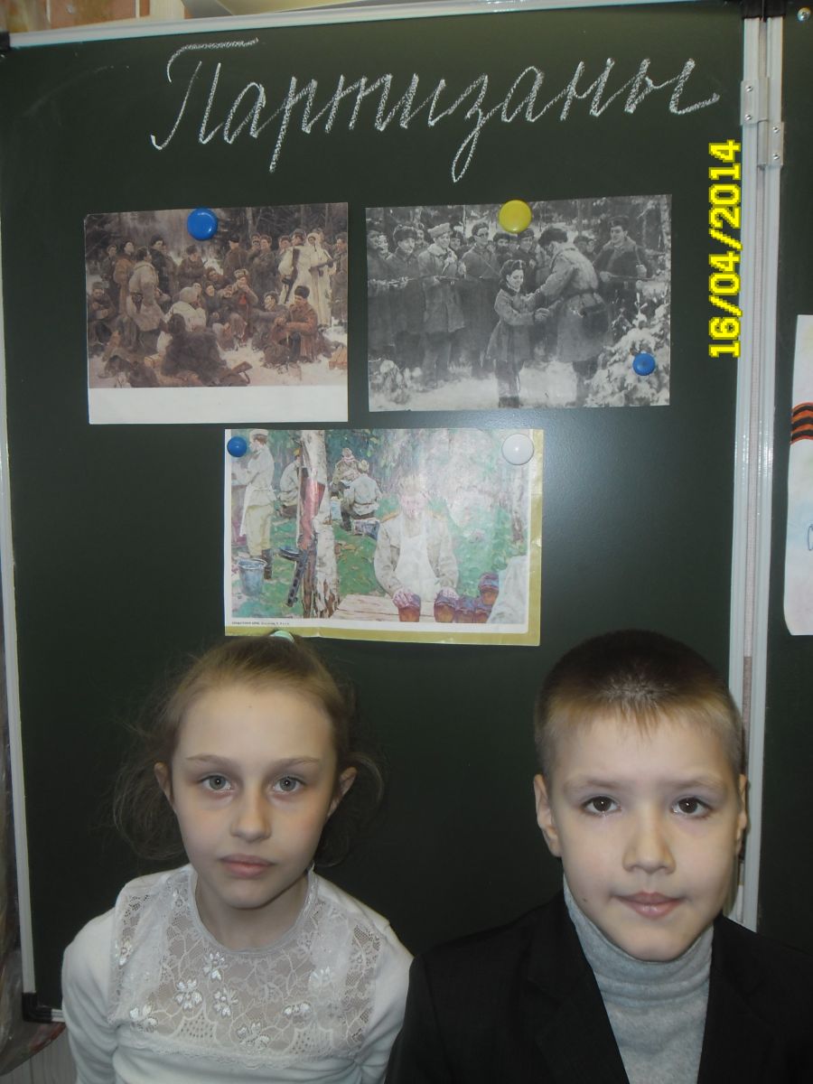 4) Во 2 А классе прошел кл. час на тему: "Партизаны в годы ВОВ."Была прослушана беседа о формированиях партизанских отрядов в тылу врага,о том, какую неоценимую помощь приносили партизаны в годы войны.