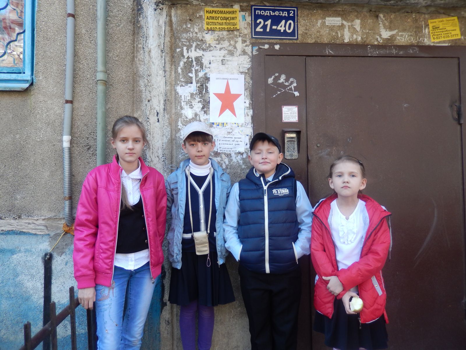 4) Учащиеся 4Б класса посетили ветерана Великой Отечественной войны. На подъезде была прикреплена Звезда Победы. Все жители этого дома должны знать, в их доме живёт ветеран Великой Отечественной войн