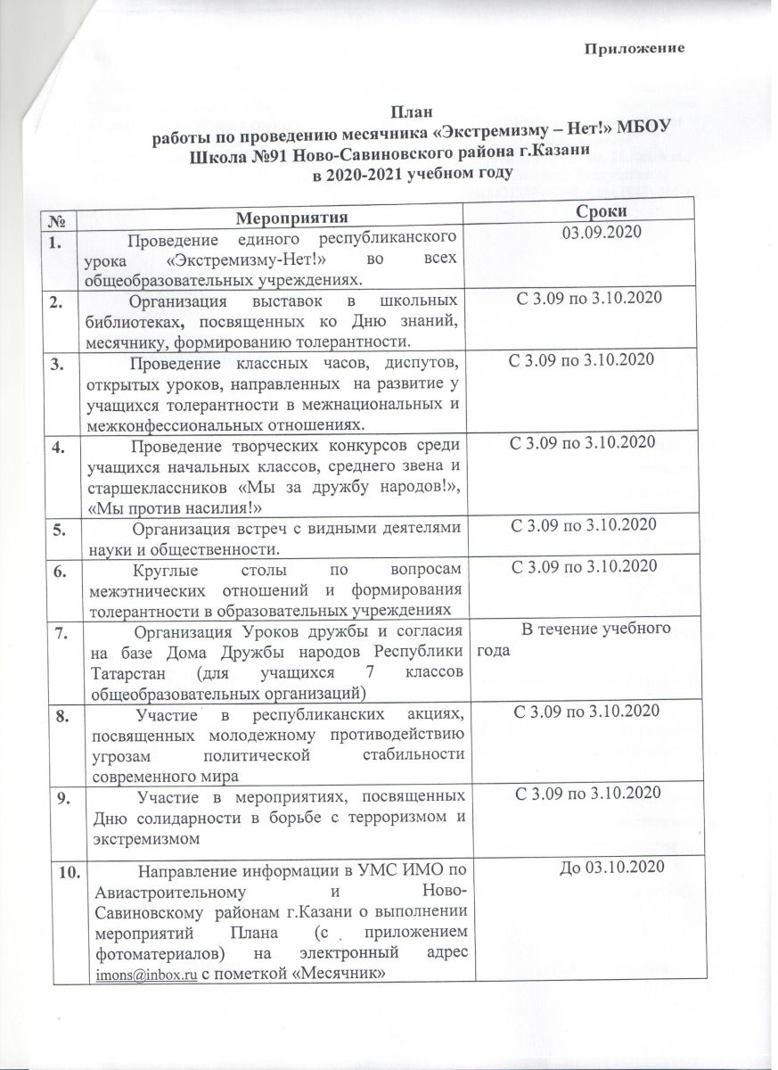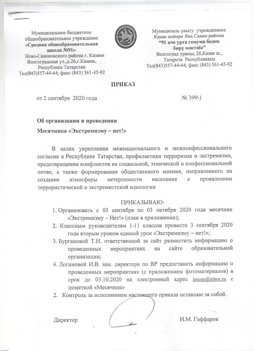 Приказ об организации и проведении месячника «Экстремизму нет!» 2020-2021 уч.год