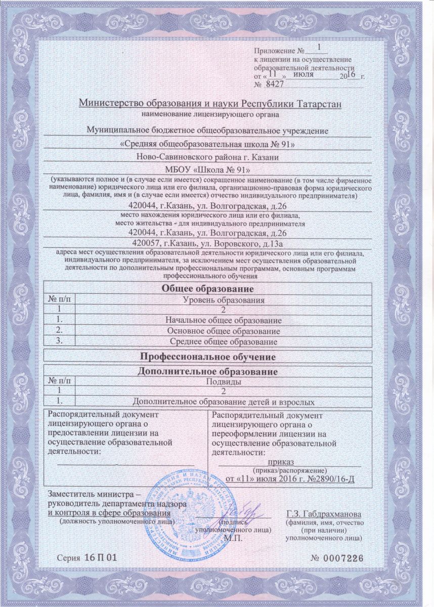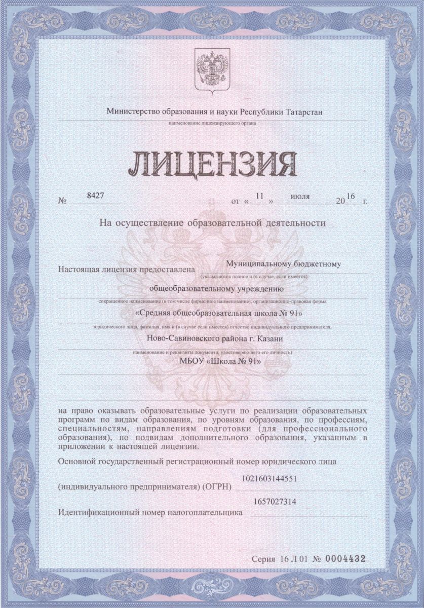 Муниципальное бюджетное общеобразовательное учреждение «Средняя общеобразовательная школа №91» Ново-Савиновского района г. Казани