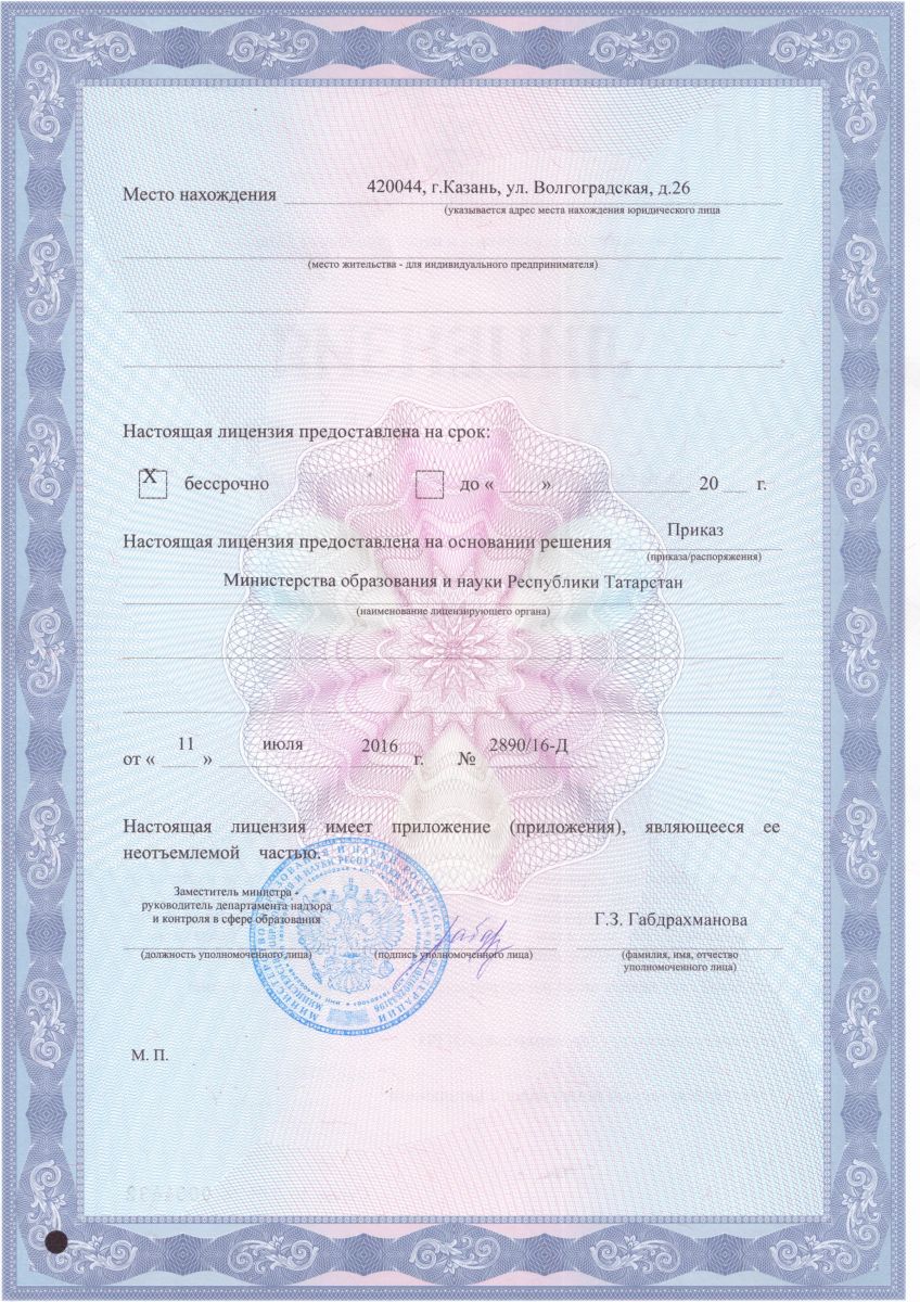 ПРИЛОЖЕНИЕ К ЛИЦЕНЗИИ