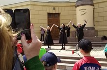 Мероприятие продолжились поэтическим митингом возле театра оперы и балета им. Джалиля.