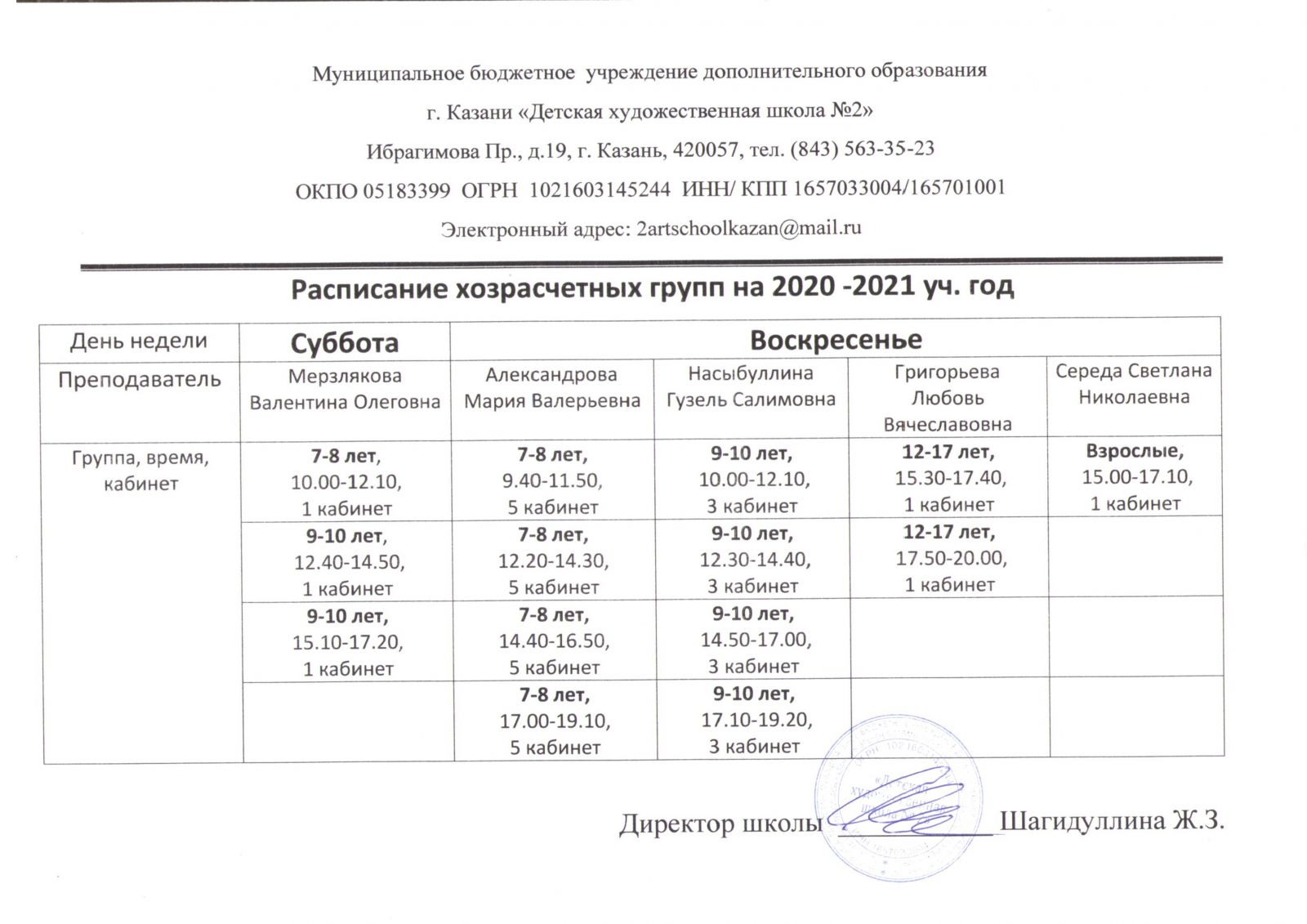 Расписание по платным курсам (хозрасчет) на 2020-2021 уч.год