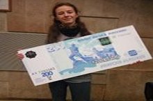 Учащиеся школы приняли участие в массовом флэшмобе за выбор символов Казани на банкнотах номиналом 200 и 2000 рублей
