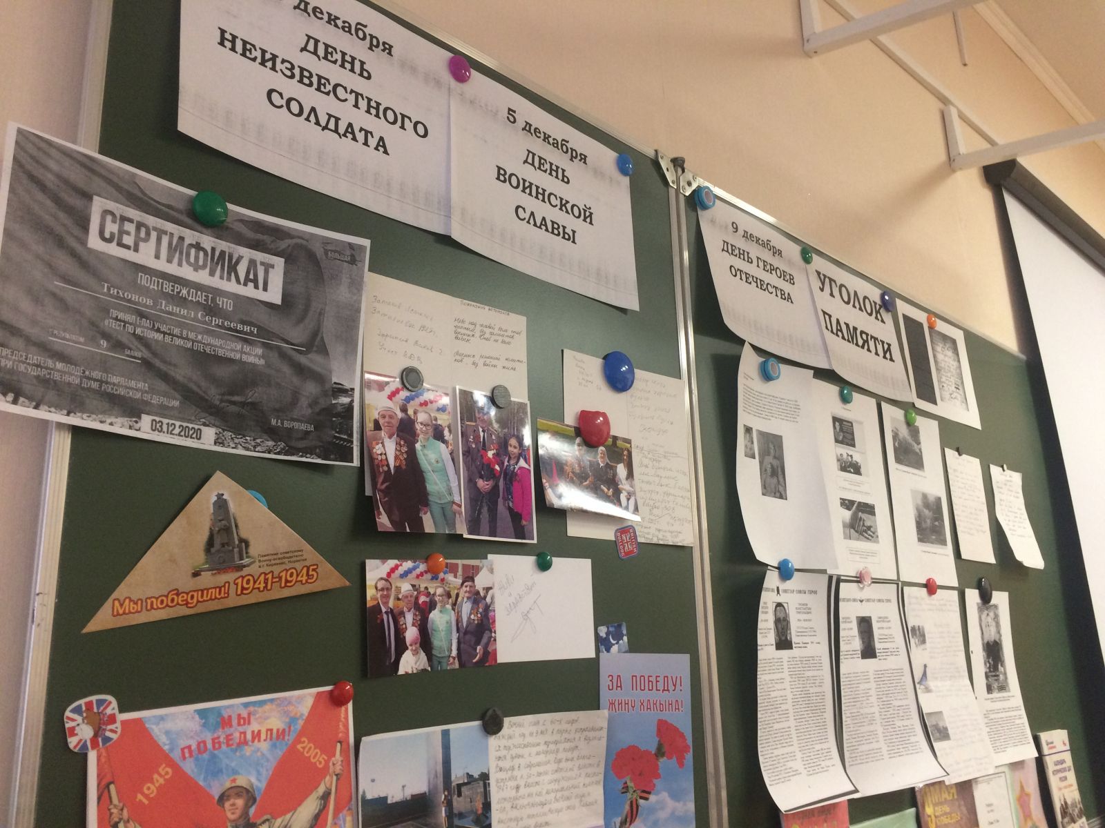 Опубликовано: 08.12.20207 декабря 2020 г. в 6 В классе прошел классный час, посвященный сразу трем памятным датам: 3 декабря — День неизвестного солдата, 5 декабря — День воинской славы и 9 декабря — День героев Отечества.