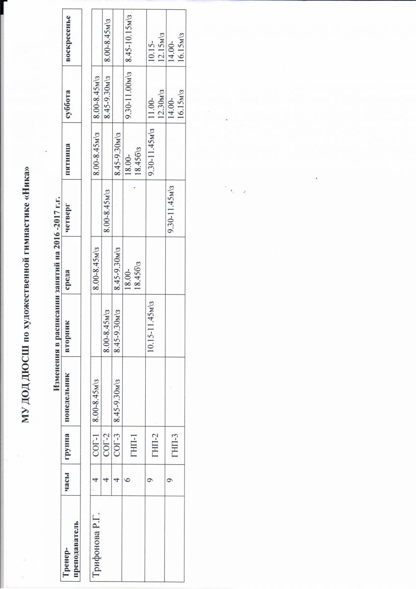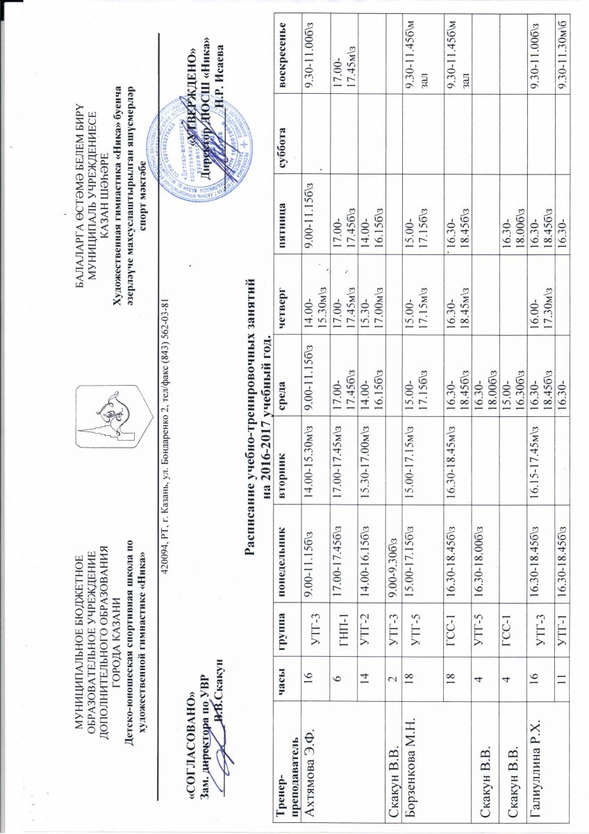 -Расписание учебно-тренировочных занятий на 2016-17 учебный год: стр.1, стр.2, стр.3, стр.4