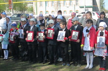 На митинге выступили ветераны ВОВ и тыла, было предоставлено слова представителю администрации муниципального района Насыровой К.Я. Она поздравила всех присутствующих ветеранов ВОВ и тыла с Днём Победы и вручила ветеранам войны подарки от имени района; глава СМС Залалетдинов Ж.М. также, поздравил односельчан, ветеранов ВОВ и тыла с парздником, вручал пакеты с продуктами и пригласил на праздничный стол в школу.