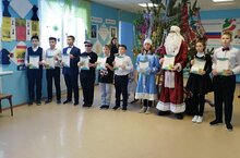 Кыш Бабай белән Кар кызы, 2022 елның символы – Юлбарыс һәм башка персонажлар балаларны бәйрәм белән котладылар. Балалар укытучылары белән бергәләп уеннарда катнаштылар, җыр-биюләр күрсәттеләр, шигырьләр сөйләделәр, сәхнәләштерелгән күренеш куйдылар.