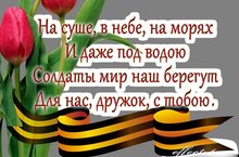 Бәйрәм белән сезне, кадерле ир-егетләребез! Сезне "Ватанны саклаучылар көне" белән чын күңелдән котлыйбыз. Сезгә бәхет, шатлык, зур уңышлар, һәм һәрвакыт күтәренке кәеф телибез. 23.02.2016