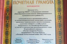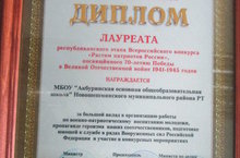 Акбүре төп мәктәбе Диплом белән бүләкләнә. Всероссийский конкурс "Растим патриотов России", посвященного 70-летию Победы в ВОВ 1941-1945 годов 31.07.2015