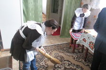 7 нче сыйныф укучылары Зәйтүнә апаның карын көрәделәр, идәннәрен себерделәр.