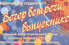 Вечер встречи выпускников состоится 30 января в 17.00 в РДК! 22.01.2015