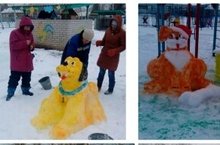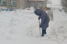 Сегодня 05 февраля, сотрудники детского сада вышли чистить снег на территории.