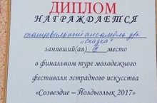 3 место в финальном туре молодежного фестиваля эстрадного искусства "Созвездие-Йолдызлык 2017" 09.03.2017