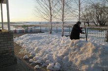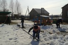 Пришла весна и начались первые весенние работы. Сотрудники Архангельского детского сада вышли раскидывать снег и собирать оттаявший мусор.
