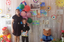 Урядников Влад и воспитатель Подопрелова Е.И. на конкурсе чтецов.