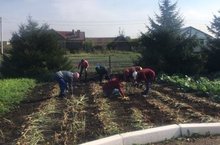 В этом году в нашей школе выращен богатый урожай овощей. Работники школы собрали с пришкольного участка лук, крыжовник, смородину, вишню и сливу.